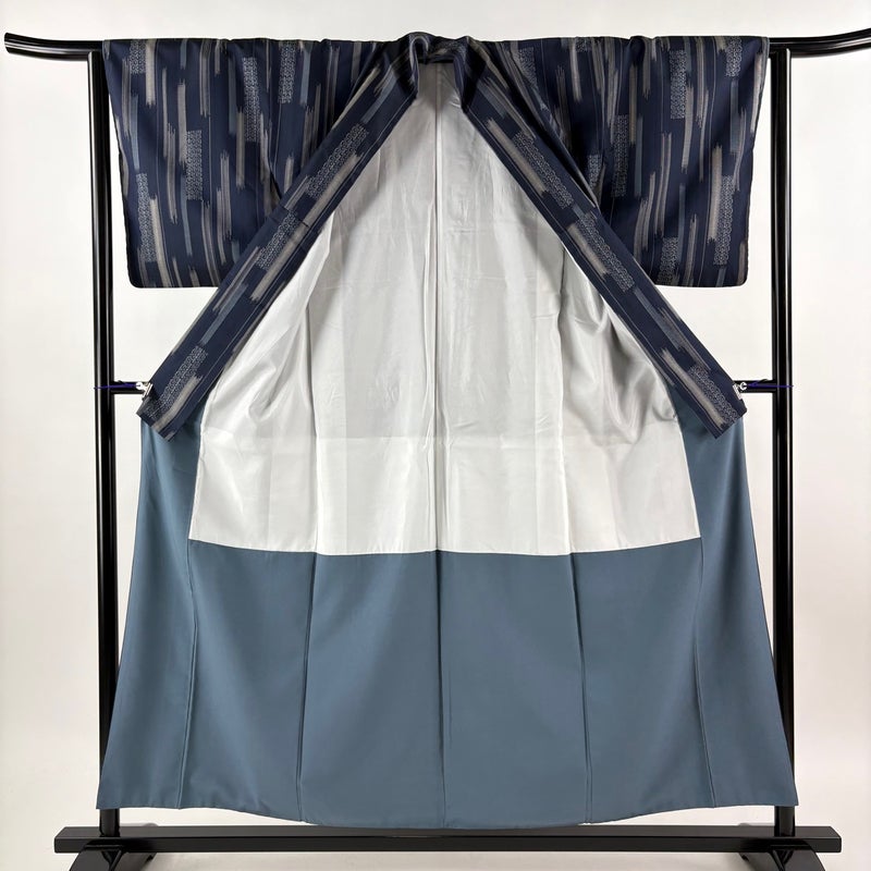 【紬】 青系 濃紺 秀品 A 約150cm~約159cm 裄丈63cm-64cm (M)size 袖丈49cm 7990-9980 美品 二万以下