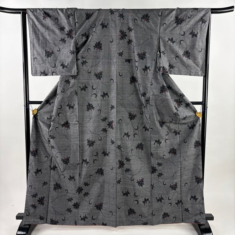 【紬】 灰色系 黒灰 秀品 A 約160cm~約169cm 裄丈66cm (M)size 袖丈49cm 7990-9980 美品 二万以下