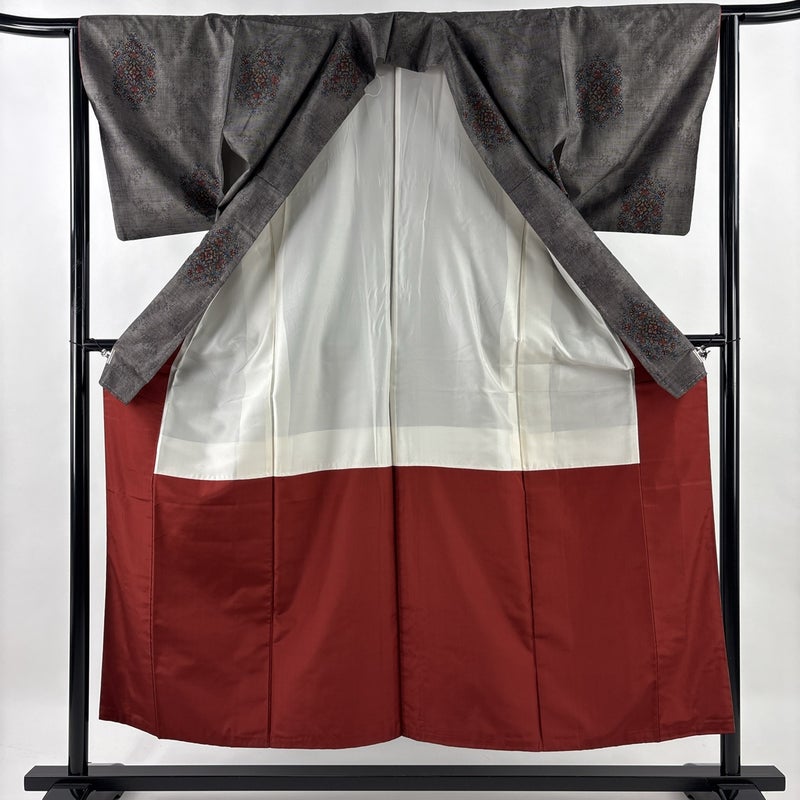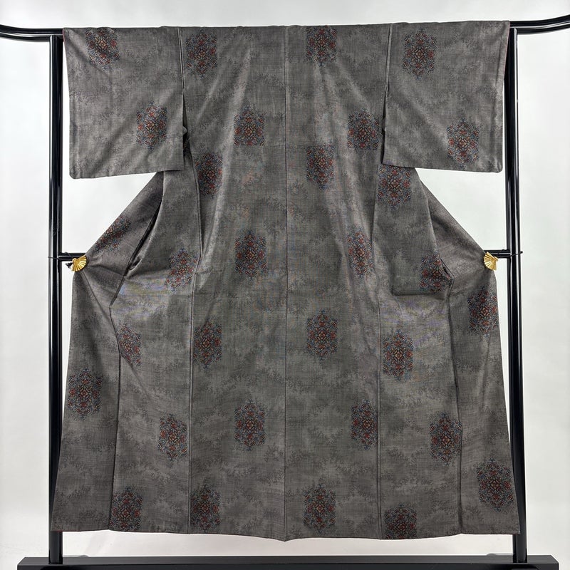 【着物ランク】秀品 【素材】正絹 【身丈】約154cm 【裄丈】約63.5cm 【袖丈】約46.5cm 【袖幅】約33.5cm 【前幅】約23cm 【後幅】約29cm 【サイズ】S 【着物仕立て】袷 【着用時期】10~5月 【状態ランク】ランクB 【着物着用シーン】気軽なパーティー、観劇、食事会、正月、気軽なお茶会、街着