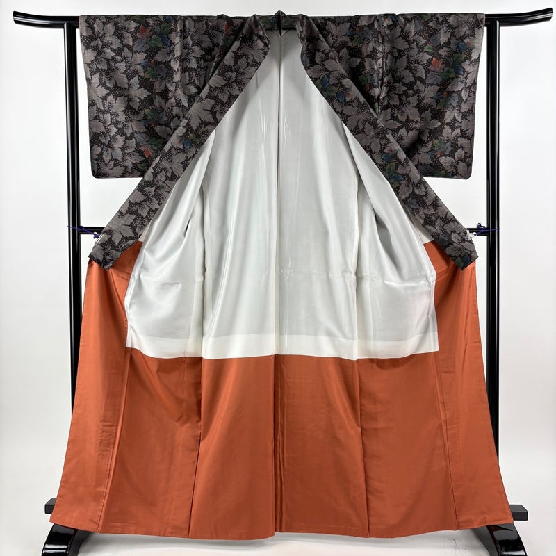 【着物ランク】秀品 【素材】正絹 【身丈】約165cm 【裄丈】約63cm 【袖丈】約50.5cm 【袖幅】約32.5cm 【前幅】約28cm 【後幅】約30cm 【サイズ】S 【着物仕立て】袷 【着用時期】10~5月 【状態ランク】ランクA 【着物着用シーン】気軽なパーティー、観劇、食事会、正月、気軽なお茶会、街着