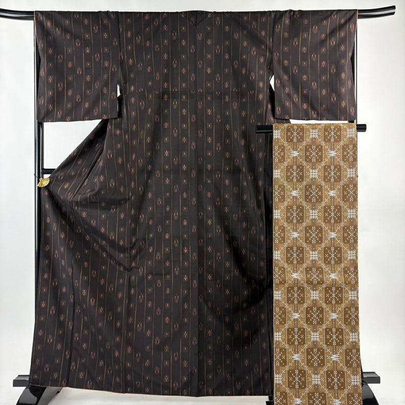 普段着やおしゃれ着として人気の紬でございます。 元々は日常着として着用していたので、その土地の風土に合った様々な種類がある素敵な一品です。 ※身丈・裄丈の縫込みの長さは測っておりません。 ※帯は丁寧に細部まで状態確認しておりません。予めご了承くださいませ。 表地所々にほこりの付着がございます。 八掛にシミ、胴裏背中心に縫い目のゆるみがございます。 リユース品としては目立った染み傷なく、状態の良いお品でございます。 ※なお、厳しく商品の状態確認を行っておりますが、記載の汚れ以外にも見落とし箇所がある可能性がある旨ご了承いただけますと幸いです。 沢山の商品の中からご覧いただき誠にありがとうございます。