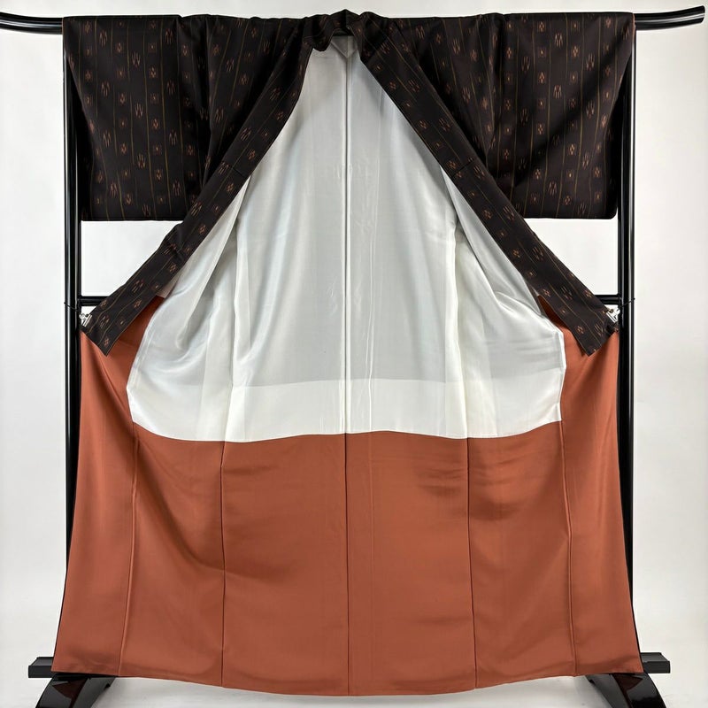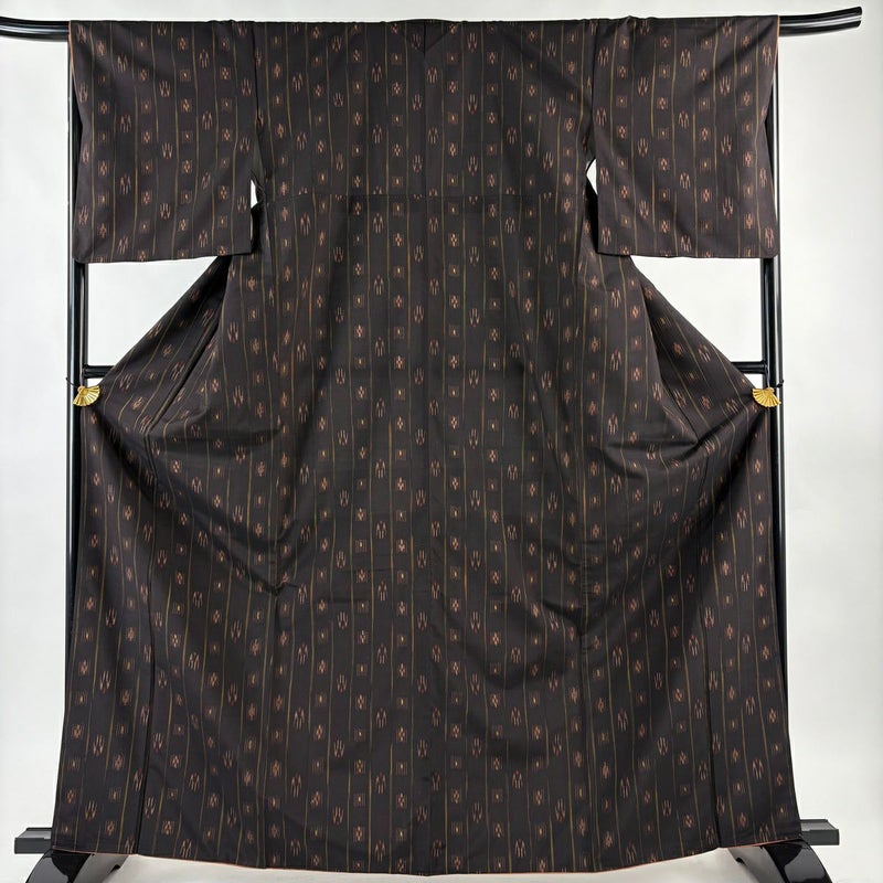 【紬】 黒系 墨色 名品 A 約160cm~約169cm 裄丈67cm-68cm (L)size 袖丈49cm 30000- 美品 五万以下