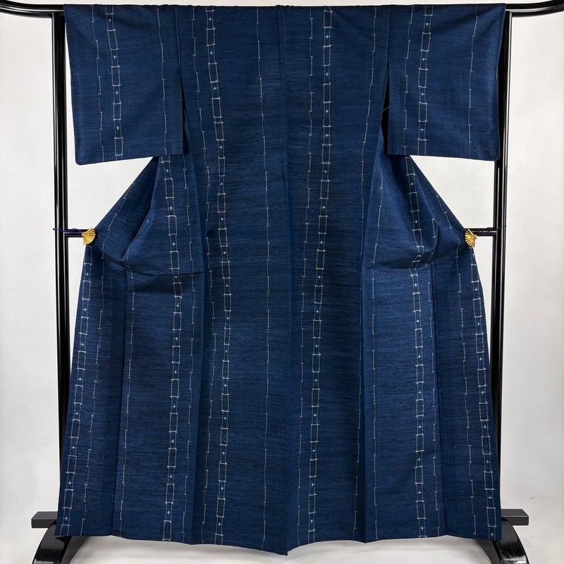 【紬】 青系 紺色 優品 A 約160cm~約169cm 裄丈63cm-64cm (M)size 袖丈49cm 4000-7980 美品 二万以下