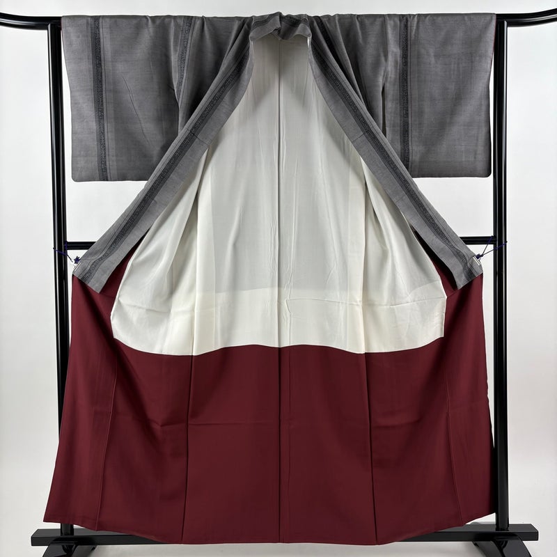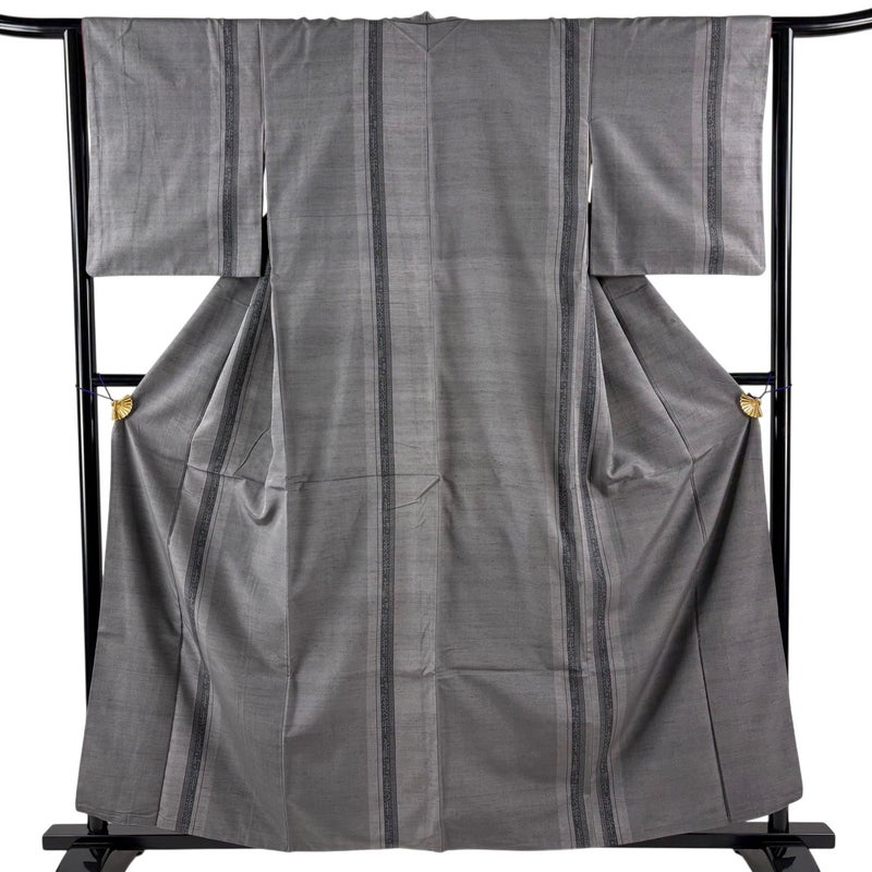 【紬】 灰色系 灰色 名品 A 約150cm~約159cm 裄丈63cm-64cm (S)size 袖丈49cm 9990-29990 美品 二万以下