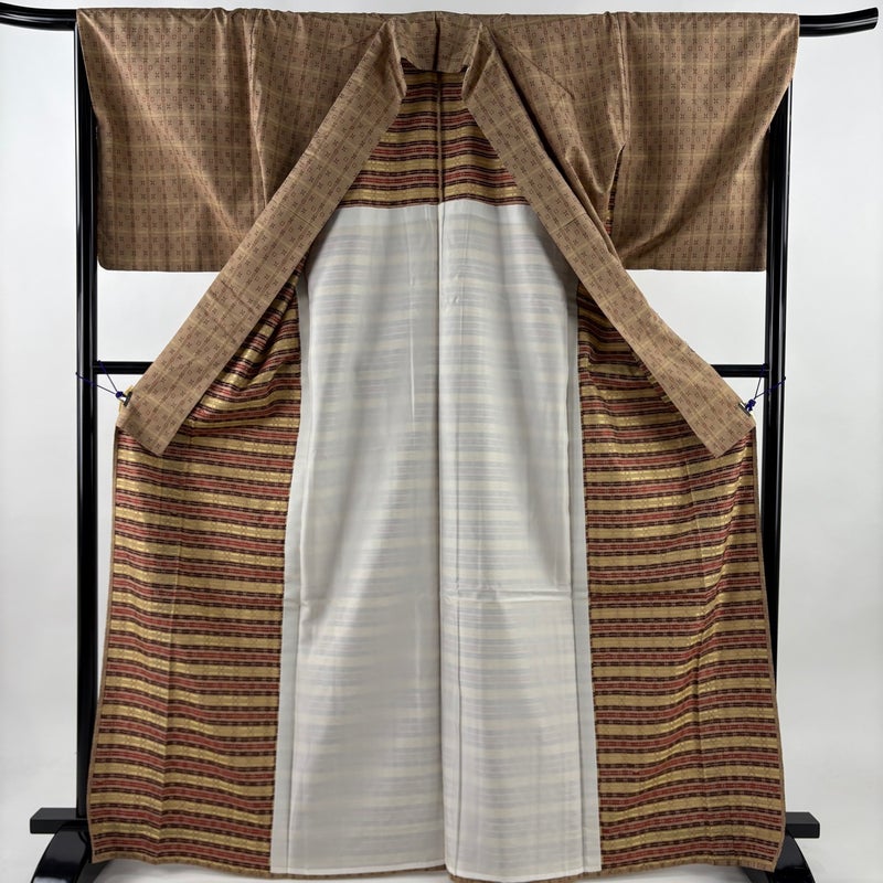 【紬】 茶系 薄茶色 逸品 B 約160cm~約169cm 裄丈67cm-68cm (L)size 袖丈48cm 30000- 五万以上