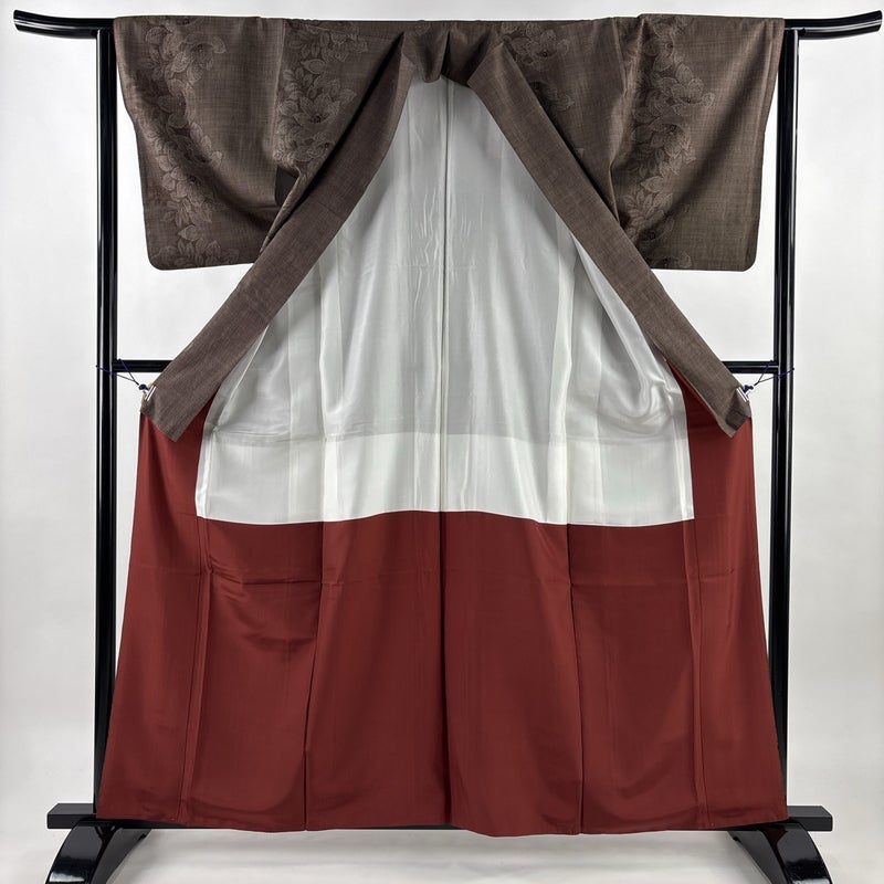 【紬】 茶系 焦茶色 秀品 A 約160cm~約169cm 裄丈63cm-64cm (M)size 袖丈48cm 7990-9980 美品 二万以下