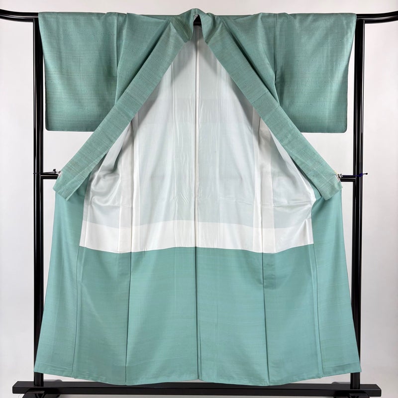 【紬】 緑系 薄緑 名品 B 約150cm~約159cm 裄丈63cm-64cm (M)size 袖丈49cm 9990-29990 二万以下
