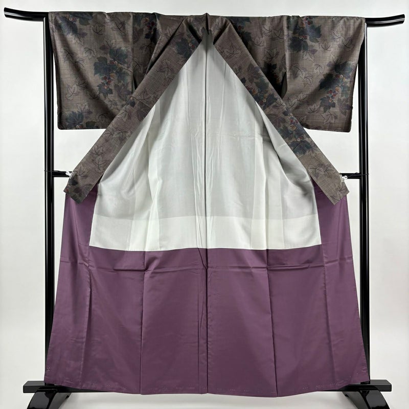 【紬】 茶系 焦茶色 秀品 A 約160cm~約169cm 裄丈65cm (M)size 袖丈49cm 9990-29990 美品 五万以下