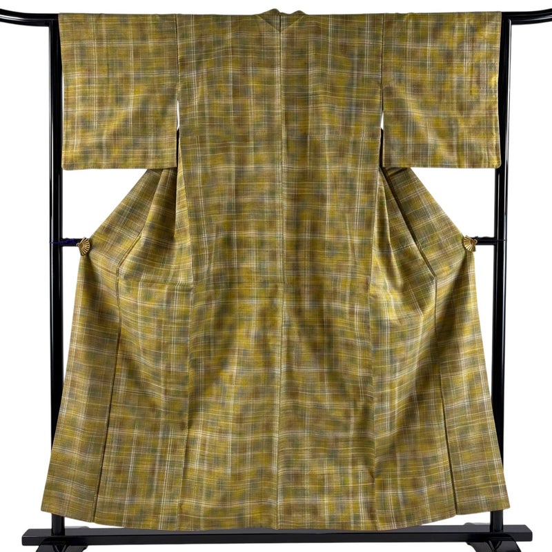 【紬】 緑系 鶯色 秀品 C 約150cm~約159cm 裄丈63cm-64cm (M)size 袖丈47cm 4000-7980 二万以下