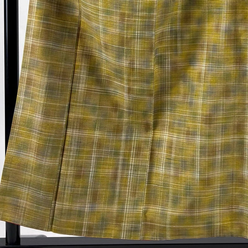 【着物ランク】秀品 【素材】正絹 【身丈】約153.5cm 【裄丈】約64.5cm 【袖丈】約47cm 【袖幅】約34cm 【前幅】約25cm 【後幅】約30cm 【サイズ】M 【着物仕立て】袷 【着用時期】10~5月 【状態ランク】ランクC 【着物着用シーン】気軽なパーティー、観劇、食事会、正月、気軽なお茶会、街着