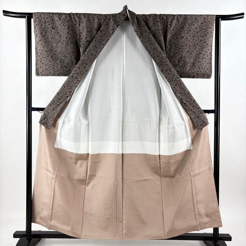 【着物ランク】秀品 【素材】正絹 【身丈】約157.5cm 【裄丈】約62.5cm 【袖丈】約45cm 【袖幅】約32cm 【前幅】約26.5cm 【後幅】約29cm 【サイズ】S 【着物仕立て】袷 【着用時期】10~5月 【状態ランク】ランクA 【着物着用シーン】気軽なパーティー、観劇、食事会、正月、気軽なお茶会、街着