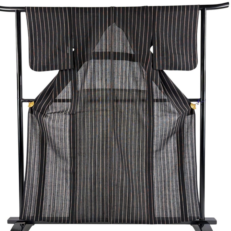 【紬】 黒系 黒 秀品 B 約160cm~約169cm 裄丈62cm以下 (S)size 袖丈48cm 9990-29990 二万以下
