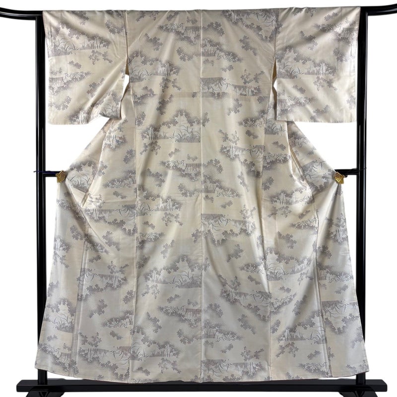 【着物ランク】秀品 【素材】正絹 【身丈】約157cm 【裄丈】約63.5cm 【袖丈】約48.5cm 【袖幅】約33cm 【前幅】約24.5cm 【後幅】約29.5cm 【サイズ】S 【着物仕立て】袷 【着用時期】10~5月 【状態ランク】ランクA 【着物着用シーン】気軽なパーティー、観劇、食事会、正月、気軽なお茶会、街着