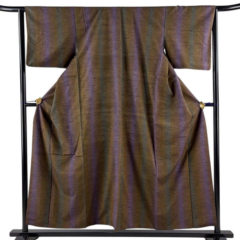 普段着やおしゃれ着として人気の紬でございます。 元々は日常着として着用していたので、その土地の風土に合った様々な種類がある素敵な一品です。 ※身丈・裄丈の縫込みの長さは測っておりません。 衿周りや両袖口中に薄汚れ、上前にシワがございます。 胴裏背中心に縫い目のゆるみがございます。 リユース品としては目立った染み傷なく、状態の良いお品でございます。 ※なお、厳しく商品の状態確認を行っておりますが、記載の汚れ以外にも見落とし箇所がある可能性がある旨ご了承いただけますと幸いです。 沢山の商品の中からご覧いただき誠にありがとうございます。