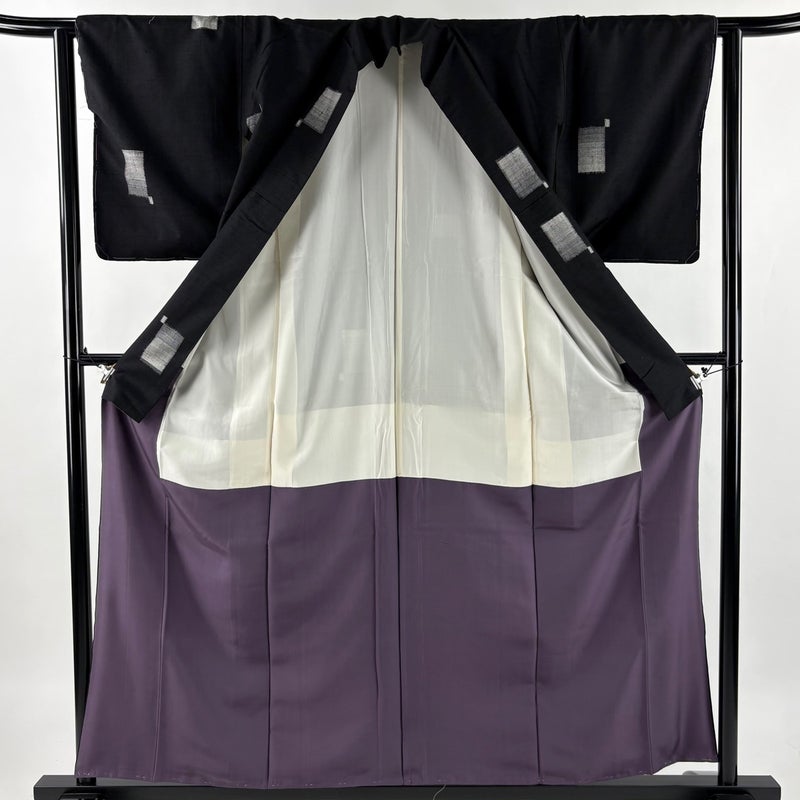 【紬】 黒系 黒 秀品 A 約150cm~約159cm 裄丈62cm以下 (S)size 袖丈49cm 7990-9980 美品 二万以下