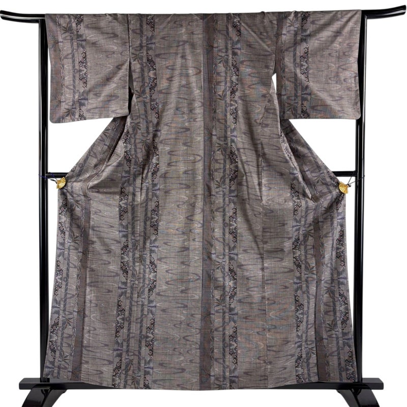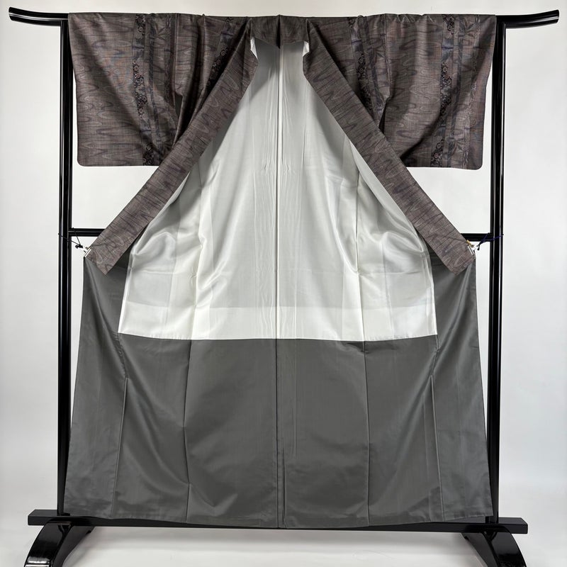 【紬】 灰色系 灰紫 秀品 A 約160cm~約169cm 裄丈65cm (M)size 袖丈47cm 7990-9980 美品 二万以下