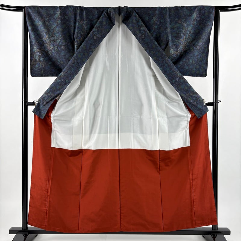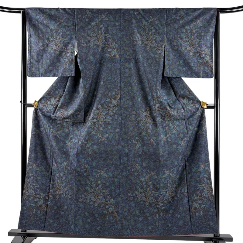 【着物ランク】名品 【素材】正絹 【身丈】約159.5cm 【裄丈】約64cm 【袖丈】約49cm 【袖幅】約33cm 【前幅】約23cm 【後幅】約29cm 【サイズ】M 【着物仕立て】袷 【着用時期】10~5月 【状態ランク】ランクA 【着物着用シーン】気軽なパーティー、観劇、食事会、正月、気軽なお茶会、街着
