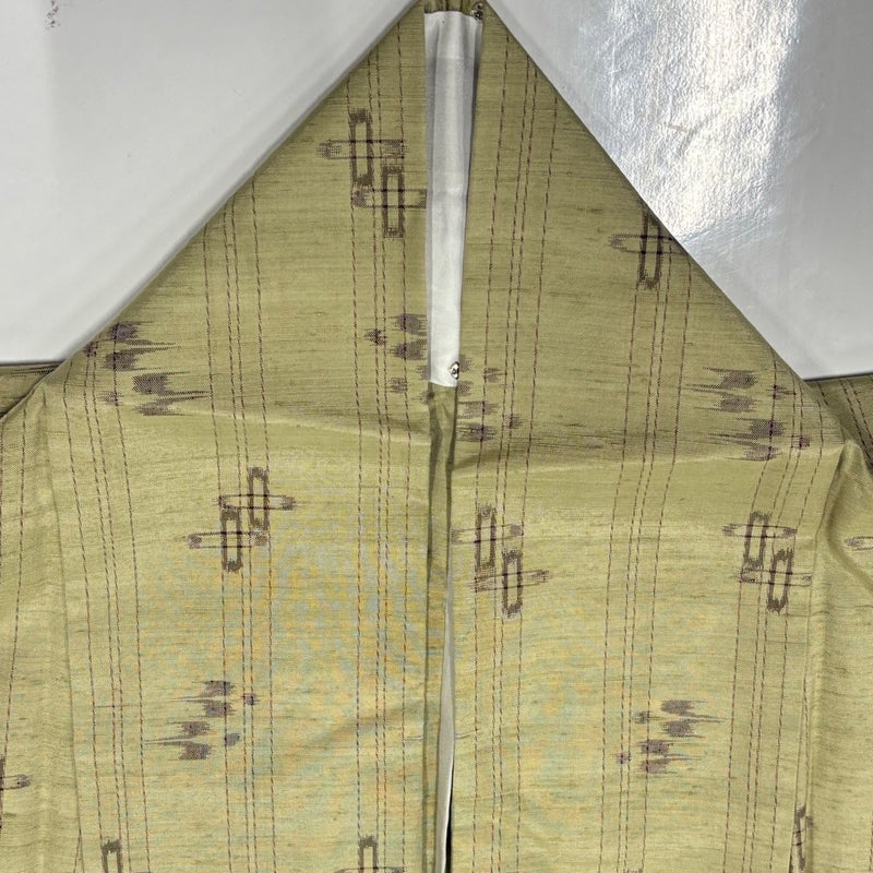 【紬】 緑系 抹茶色 秀品 B 約150cm~約159cm 裄丈63cm-64cm (M)size 袖丈49cm 9990-29990 二万以下