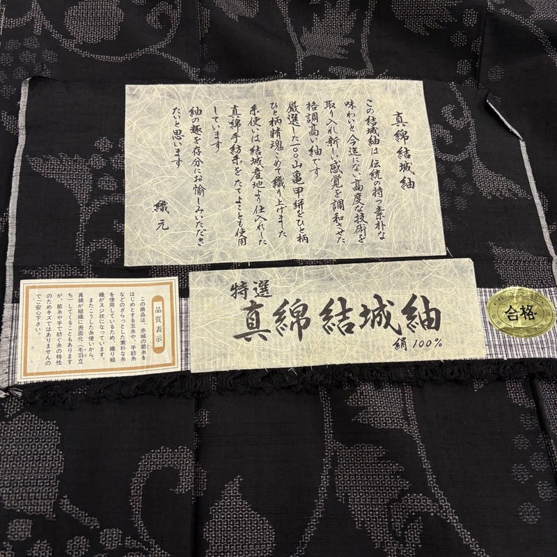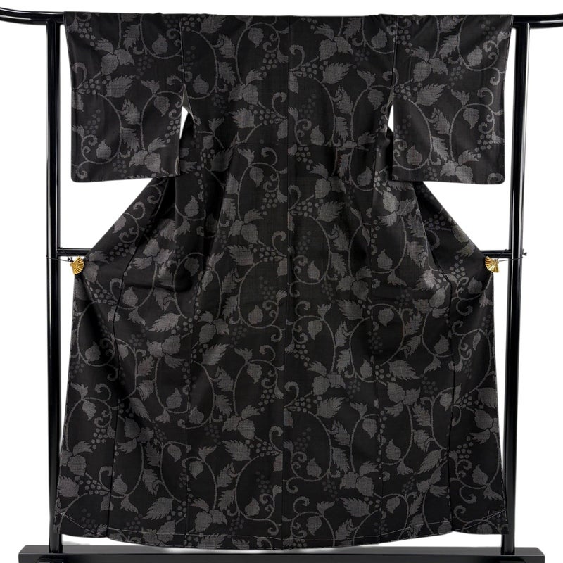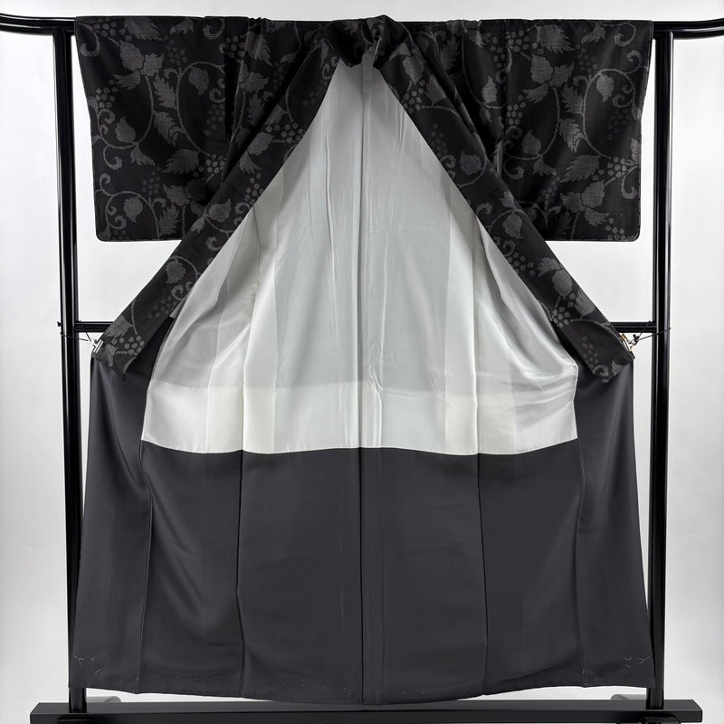 【紬】 黒系 黒 秀品 A 約150cm~約159cm 裄丈62cm以下 (S)size 袖丈49cm 7990-9980 美品 二万以下