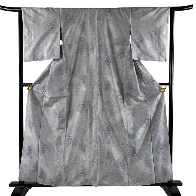【着物ランク】秀品 【素材】正絹 【身丈】約160cm 【裄丈】約64cm 【袖丈】約49.5cm 【袖幅】約32.5cm 【前幅】約24cm 【後幅】約30cm 【サイズ】M 【着物仕立て】袷 【着用時期】10~5月 【状態ランク】ランクB 【着物着用シーン】気軽なパーティー、観劇、食事会、正月、気軽なお茶会、街着