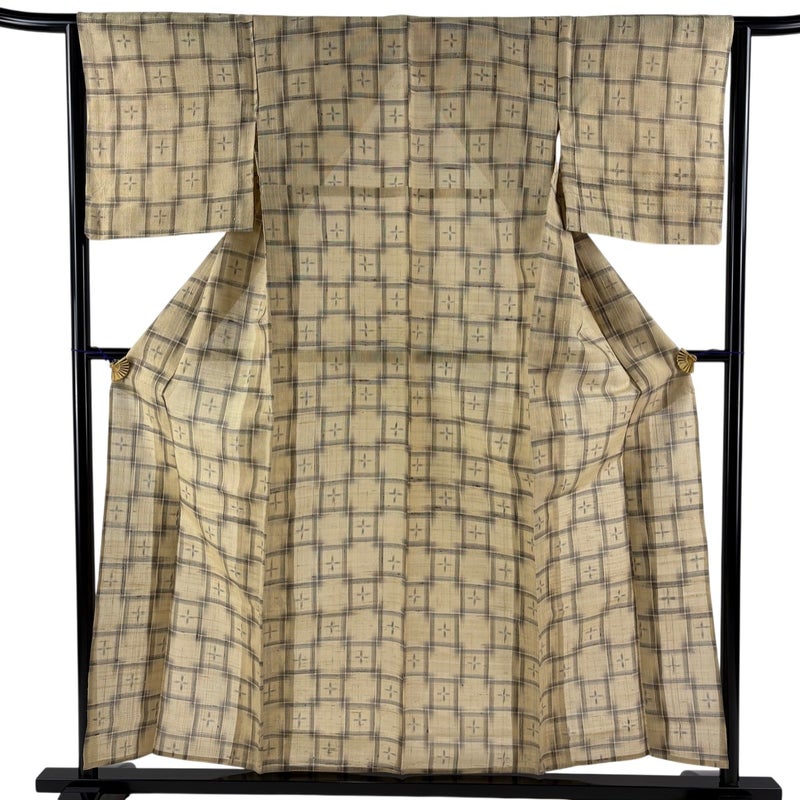 【着物ランク】逸品 【素材】麻 【身丈】約157.5cm 【裄丈】約63cm 【袖丈】約46cm 【袖幅】約34cm 【前幅】約24cm 【後幅】約28.5cm 【サイズ】S 【着物仕立て】薄物 【着用時期】7~8月 【状態ランク】ランクB 【着物着用シーン】気軽なパーティー、観劇、食事会、正月、気軽なお茶会、街着