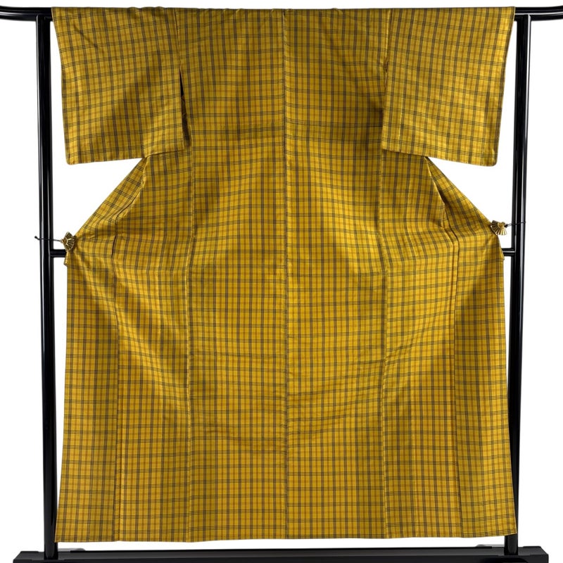 【紬】 黄色系 黄土色 逸品 A 約150cm~約159cm 裄丈62cm以下 (S)size 袖丈46cm以下 30000- 美品 五万以下