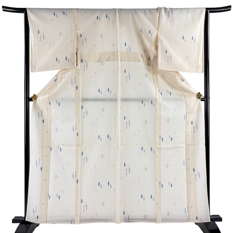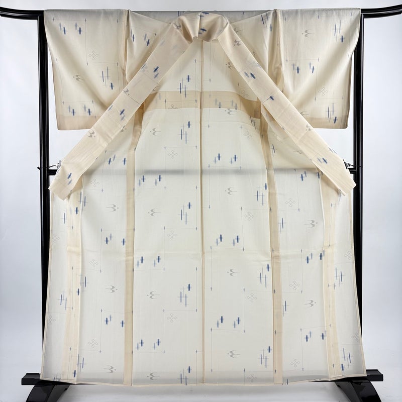 【紬】 白系 クリーム 逸品 C 約160cm~約169cm 裄丈65cm (M)size 袖丈50cm-60cm 30000- 五万以上