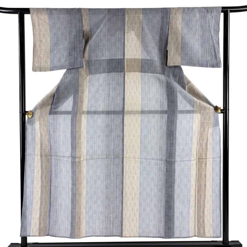 【着物ランク】逸品 【素材】麻 【身丈】約155cm 【裄丈】約60.5cm 【袖丈】約44cm 【袖幅】約32cm 【前幅】約23cm 【後幅】約28cm 【サイズ】S 【着物仕立て】薄物 【着用時期】7~8月 【状態ランク】ランクB 【着物着用シーン】気軽なパーティー、観劇、食事会、正月、気軽なお茶会、街着