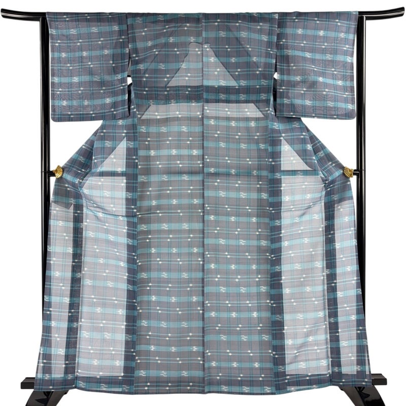 【着物ランク】逸品 【素材】正絹 【身丈】約163.5cm 【裄丈】約64cm 【袖丈】約48cm 【袖幅】約32cm 【前幅】約25cm 【後幅】約29.5cm 【サイズ】M 【着物仕立て】薄物 【着用時期】7~8月 【状態ランク】ランクB 【着物着用シーン】気軽なパーティー、観劇、食事会、正月、気軽なお茶会、街着