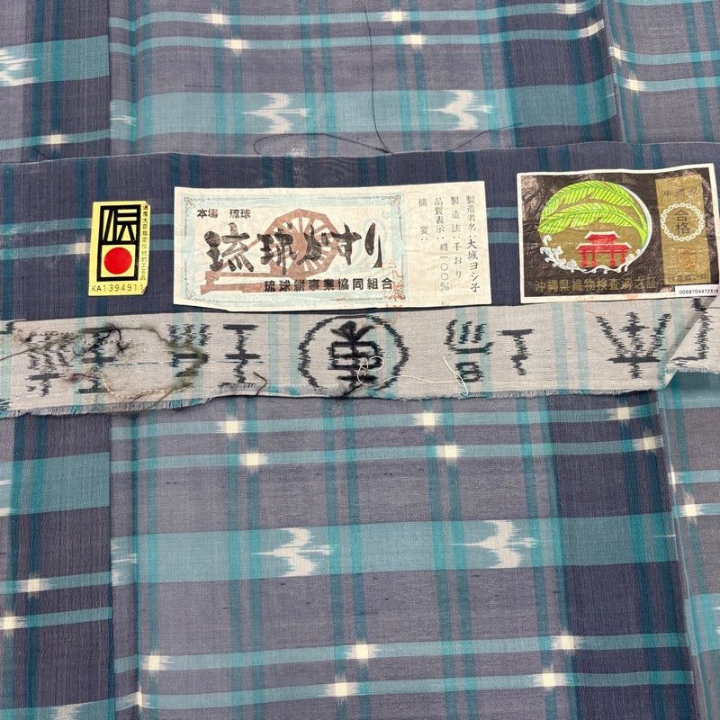 琉球絣とは沖縄県で生産される織物の一つでございます。 独特な絣模様は全国の絣のルーツに影響を与えたとされており、現代でも数多くの愛好家に愛されております。 身丈を+3.0cm程、現在の長さから伸ばせます。 裄丈を+4.5cm程、現在の長さから伸ばせます。 上前にシミがございます。 リユース品としては良い状態で、まだまだご活用頂けると思われます。 ※なお、厳しく商品の状態確認を行っておりますが、記載の汚れ以外にも見落とし箇所がある可能性がある旨ご了承いただけますと幸いです。 沢山の商品の中からご覧いただき誠にありがとうございます。