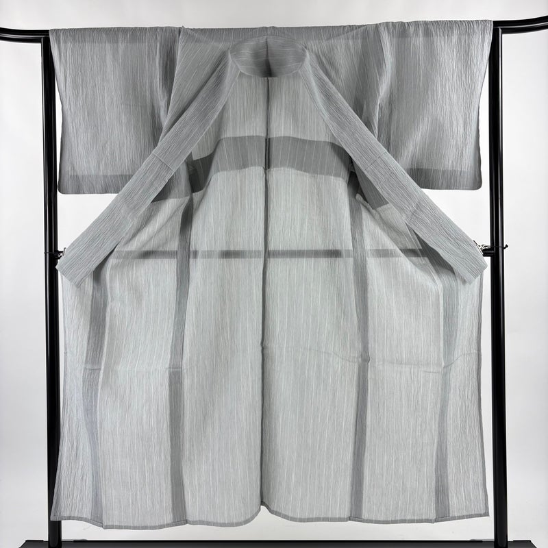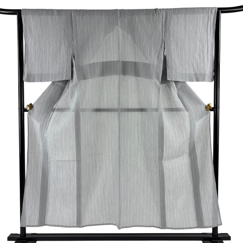 【紬】 灰色系 灰色 逸品 A 約150cm~約159cm 裄丈63cm-64cm (M)size 袖丈49cm 30000- 美品 五万以下