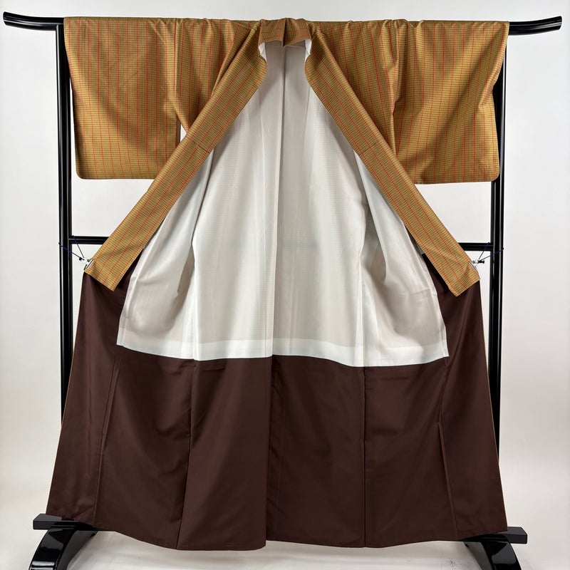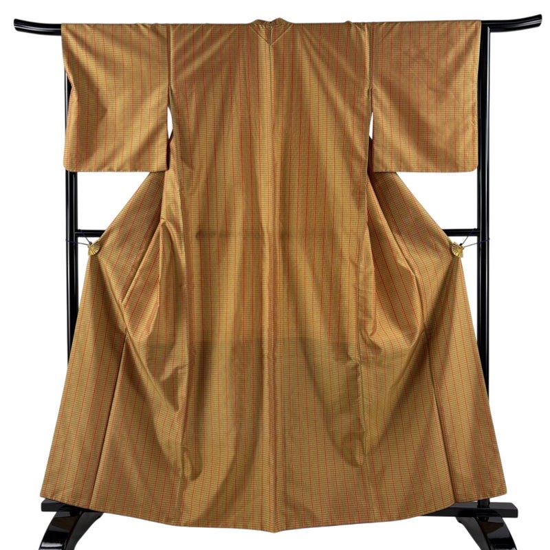 【紬】 黄色系 山吹茶色 逸品 B 約160cm~約169cm 裄丈66cm (M)size 袖丈49cm 30000- 五万以下