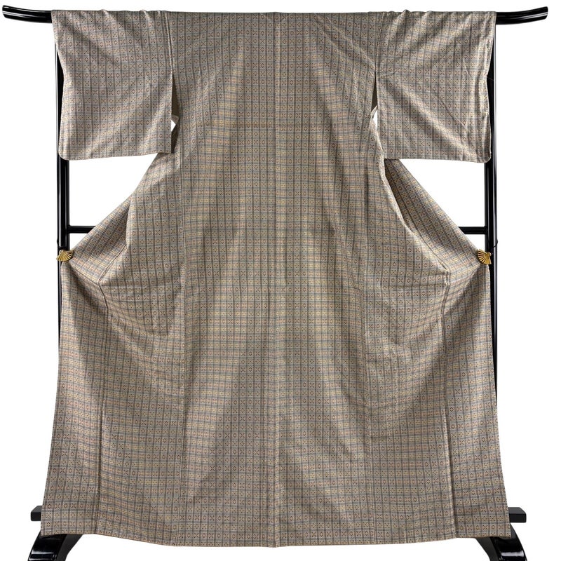普段着やおしゃれ着として人気の紬でございます。 元々は日常着として着用していたので、その土地の風土に合った様々な種類がある素敵な一品です。 身丈はこれ以上伸ばすことができません。 裄丈はこれ以上伸ばすことができません。 両袖口中と八掛裾にガロンテープを縫っております。 リユース品としては目立った染み傷なく、状態の良いお品でございます。 ※なお、厳しく商品の状態確認を行っておりますが、記載の汚れ以外にも見落とし箇所がある可能性がある旨ご了承いただけますと幸いです。 沢山の商品の中からご覧いただき誠にありがとうございます。 【PR2】
