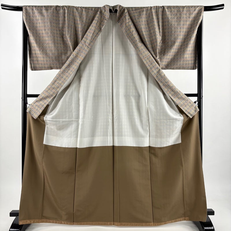 【紬】 灰色系 灰茶 逸品 A 約160cm~約169cm 裄丈67cm-68cm (M)size 袖丈49cm 30000- 美品 五万以上