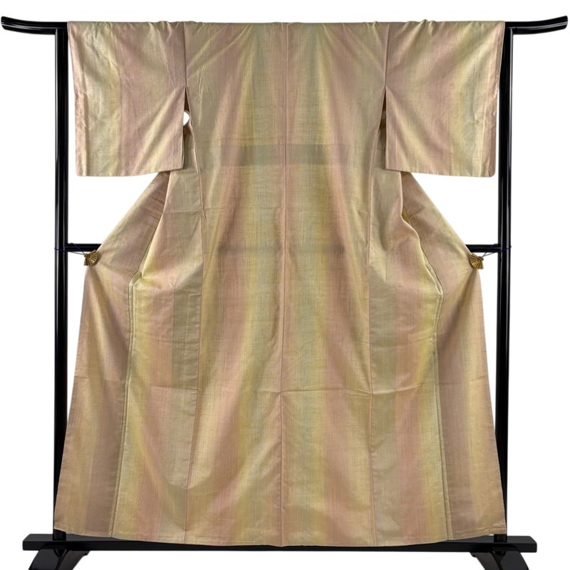 【紬】 黄色系 薄黄 名品 B 約150cm~約159cm 裄丈63cm-64cm (M)size 袖丈47cm 9990-29990 二万以下