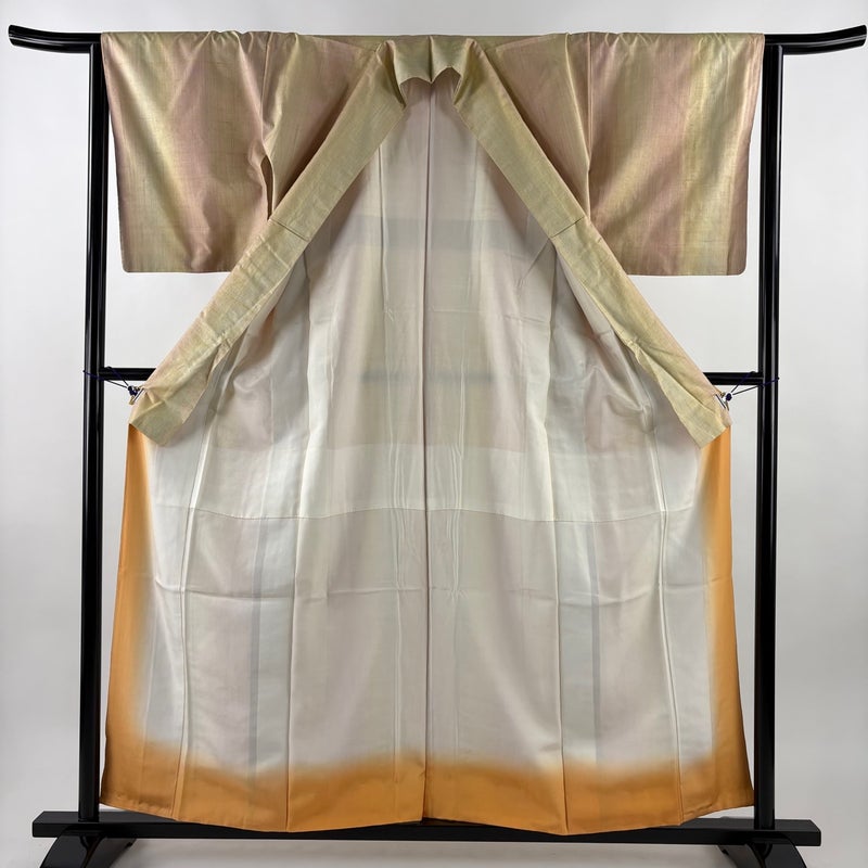 【着物ランク】名品 【素材】正絹 【身丈】約159cm 【裄丈】約64cm 【袖丈】約47cm 【袖幅】約33cm 【前幅】約23cm 【後幅】約29cm 【サイズ】M 【着物仕立て】袷 【着用時期】10~5月 【状態ランク】ランクB 【着物着用シーン】気軽なパーティー、観劇、食事会、正月、気軽なお茶会、街着