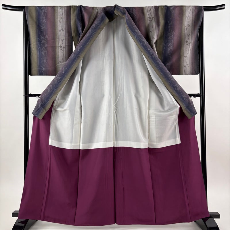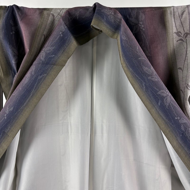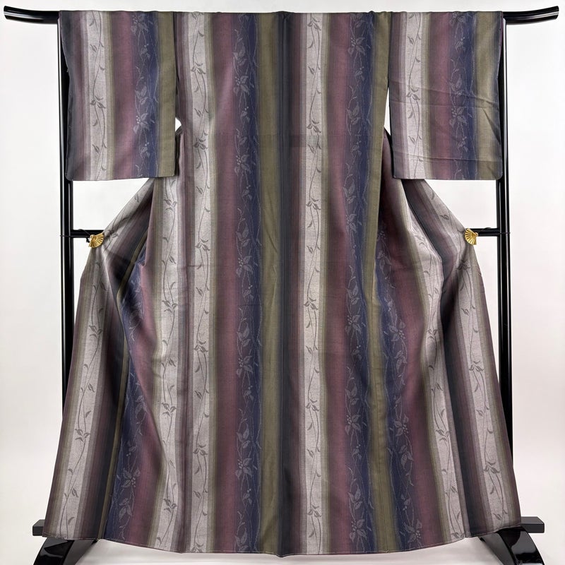 【紬】 灰色系 灰紫 秀品 A 約160cm~約169cm 裄丈66cm (M)size 袖丈50cm-60cm 9990-29990 美品 五万以下