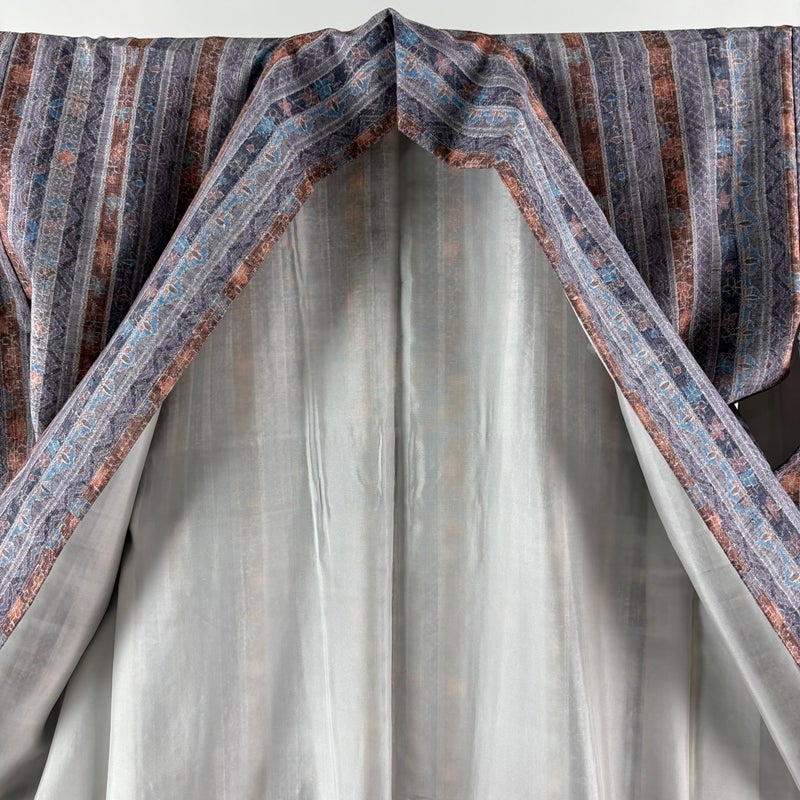 【紬】 灰色系 灰紫 秀品 A 約160cm~約169cm 裄丈63cm-64cm (M)size 袖丈49cm 9990-29990 美品 五万以下