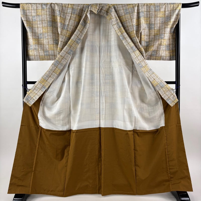 【紬】 灰色系 灰茶 名品 A 約160cm~約169cm 裄丈67cm-68cm (L)size 袖丈49cm 30000- 美品 五万以下