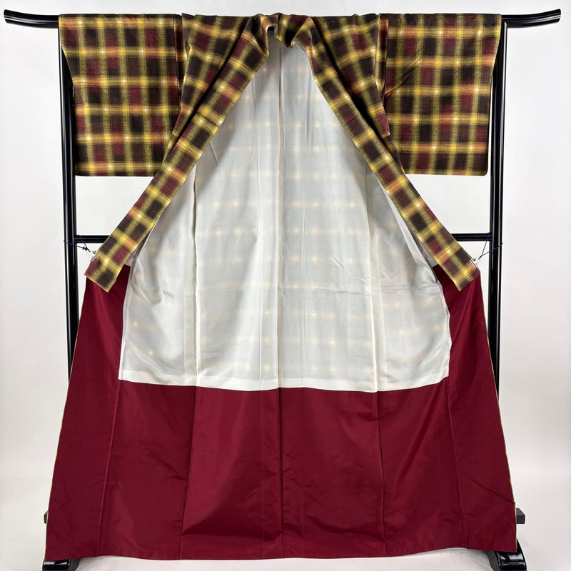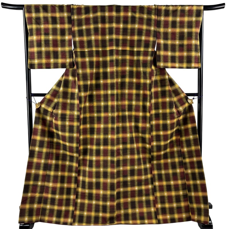 普段着やおしゃれ着として人気の紬でございます。 元々は日常着として着用していたので、その土地の風土に合った様々な種類がある素敵な一品です。 ※身丈・裄丈の縫込みの長さは測っておりません。 上前にシワがございます。 胴裏所々にホックシミがございます。 リユース品としては目立った染み傷なく、状態の良いお品でございます。 ※なお、厳しく商品の状態確認を行っておりますが、記載の汚れ以外にも見落とし箇所がある可能性がある旨ご了承いただけますと幸いです。 沢山の商品の中からご覧いただき誠にありがとうございます。