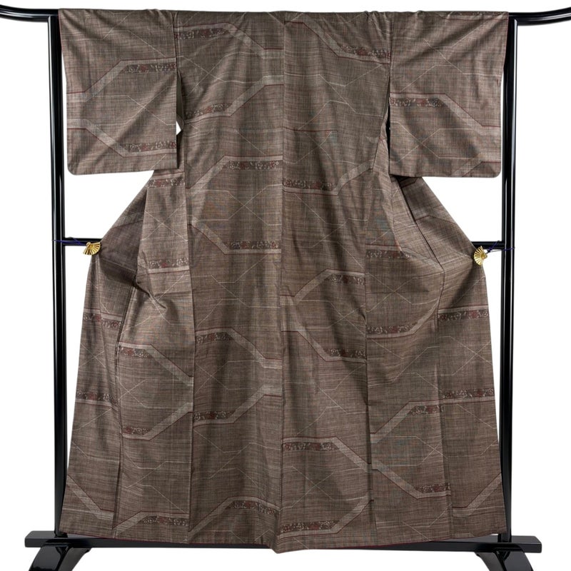 普段着やおしゃれ着として人気の紬でございます。 元々は日常着として着用していたので、その土地の風土に合った様々な種類がある素敵な一品です。 ※身丈・裄丈の縫込みの長さは測っておりません。 胴裏所々にシミ、衿裏にホックシミ、衿裏と胴裏に黄変がございます。 リユース品としては目立った染み傷なく、状態の良いお品でございます。 ※なお、厳しく商品の状態確認を行っておりますが、記載の汚れ以外にも見落とし箇所がある可能性がある旨ご了承いただけますと幸いです。 沢山の商品の中からご覧いただき誠にありがとうございます。