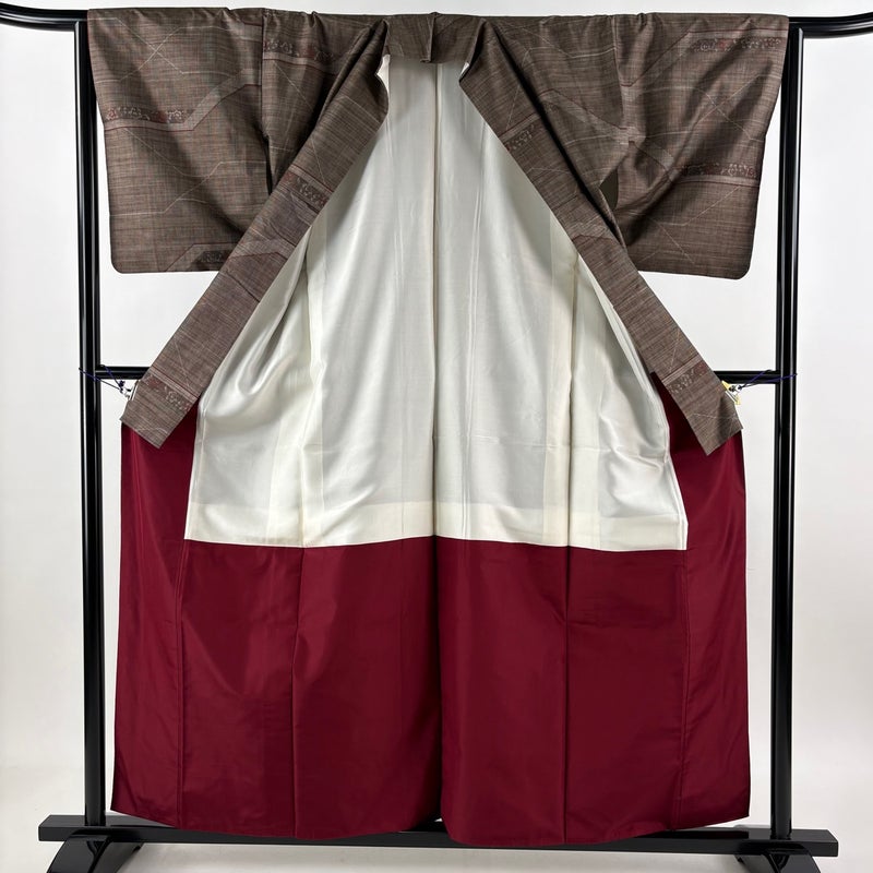 【紬】 茶系 焦茶色 秀品 A 約160cm~約169cm 裄丈63cm-64cm (M)size 袖丈49cm 7990-9980 美品 二万以下