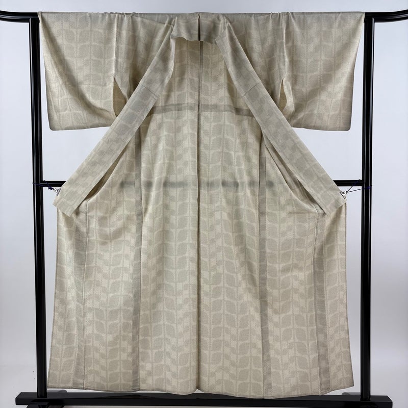 【紬】 白系 ベージュ 秀品 C 約150cm~約159cm 裄丈63cm-64cm (S)size 袖丈47cm 7990-9980 二万以下