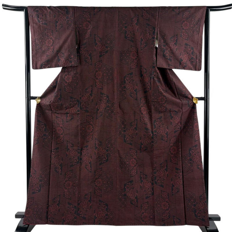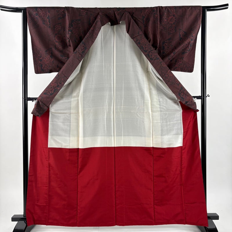【紬】 赤系 赤黒 優品 A 約160cm~約169cm 裄丈63cm-64cm (M)size 袖丈49cm 4000-7980 美品 二万以下