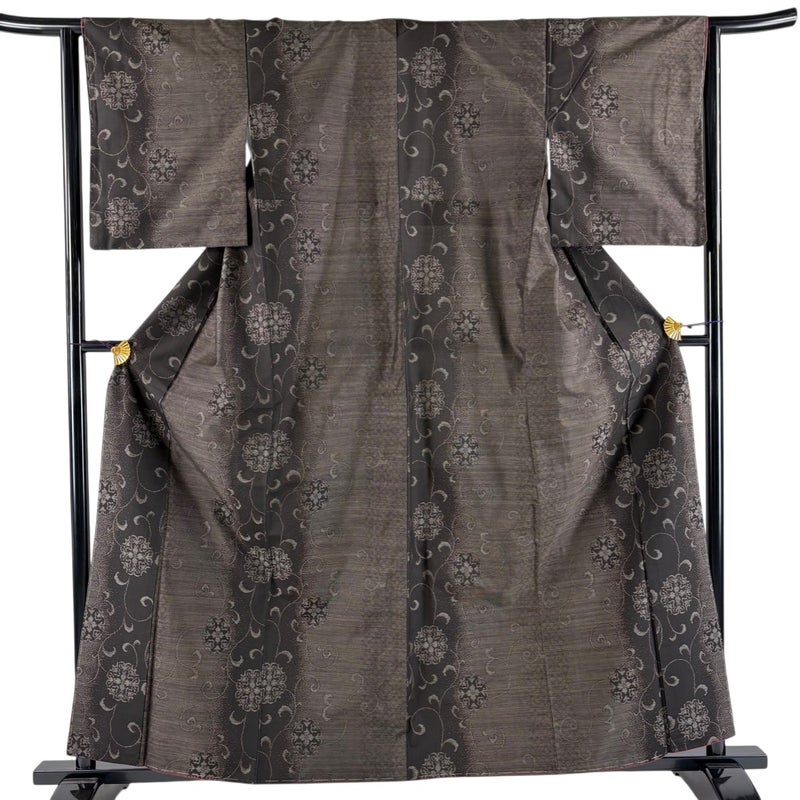 【着物ランク】優品 【素材】正絹 【身丈】約160.5cm 【裄丈】約64cm 【袖丈】約49cm 【袖幅】約32.5cm 【前幅】約24.5cm 【後幅】約31cm 【サイズ】M 【着物仕立て】袷 【着用時期】10~5月 【状態ランク】ランクB 【着物着用シーン】気軽なパーティー、観劇、食事会、正月、気軽なお茶会、街着