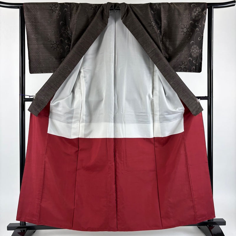 【紬】 茶系 焦茶色 優品 B 約160cm~約169cm 裄丈63cm-64cm (M)size 袖丈49cm -3980 二万以下