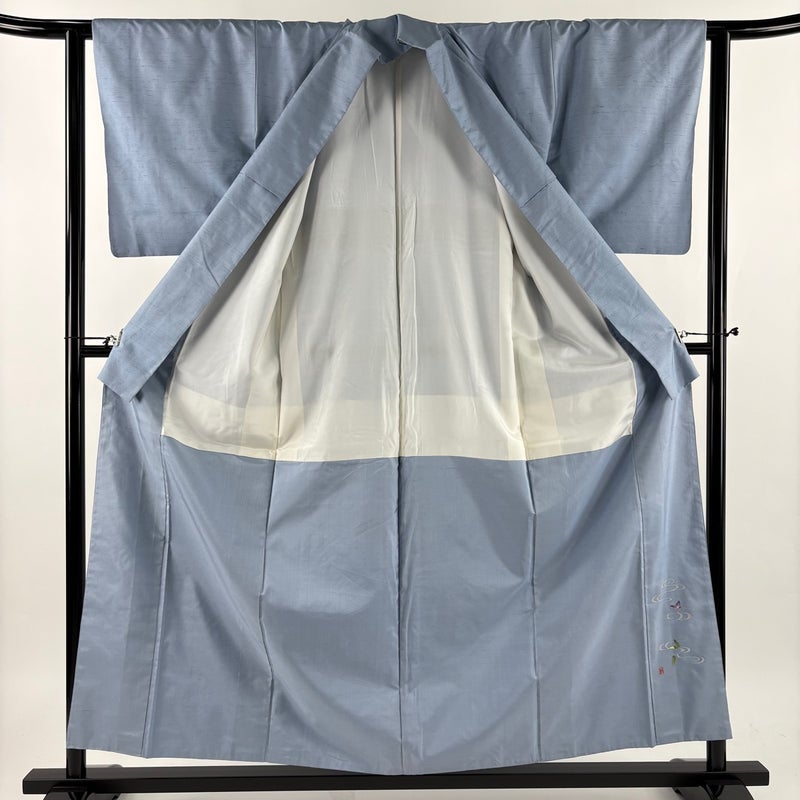 【紬】 青系 水色 秀品 B 約150cm~約159cm 裄丈63cm-64cm (S)size 袖丈48cm 4000-7980 二万以下