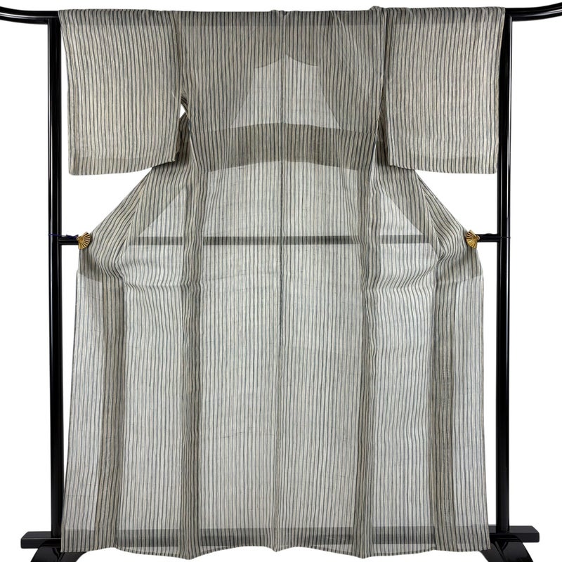 【着物ランク】秀品 【素材】麻 【身丈】約164cm 【裄丈】約65cm 【袖丈】約49cm 【袖幅】約34cm 【前幅】約23cm 【後幅】約28.5cm 【サイズ】M 【着物仕立て】薄物 【着用時期】7~8月 【状態ランク】ランクA 【着物着用シーン】気軽なパーティー、観劇、食事会、正月、気軽なお茶会、街着