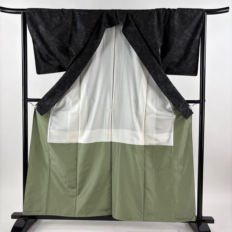【紬】 黒系 墨色 秀品 A 約160cm~約169cm 裄丈66cm (M)size 袖丈48cm 7990-9980 美品 二万以下