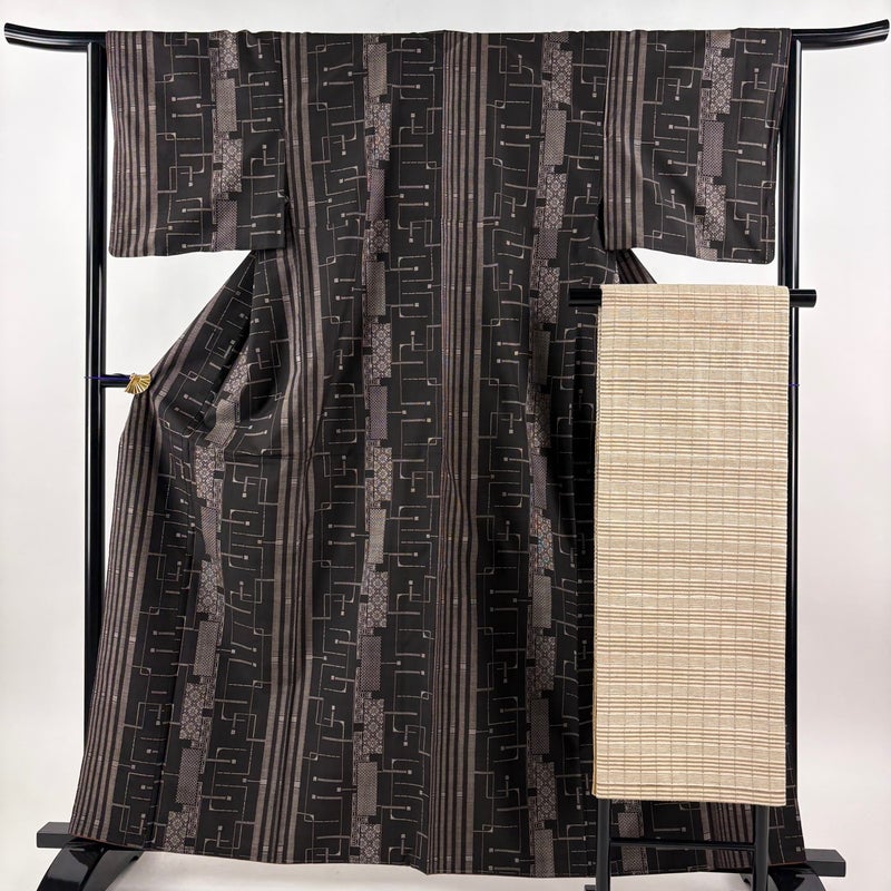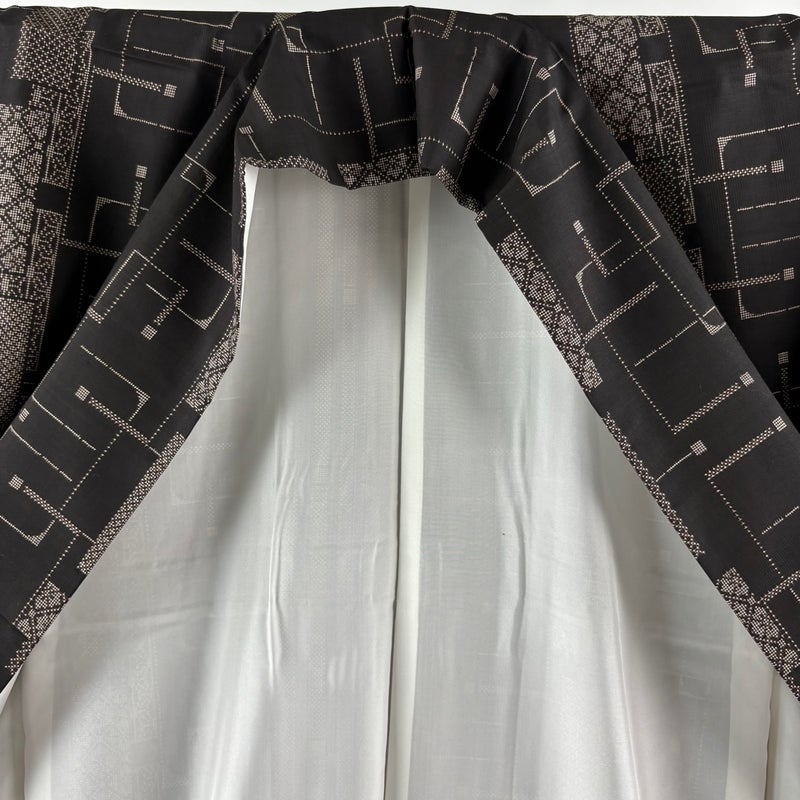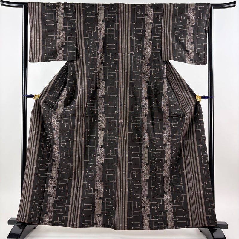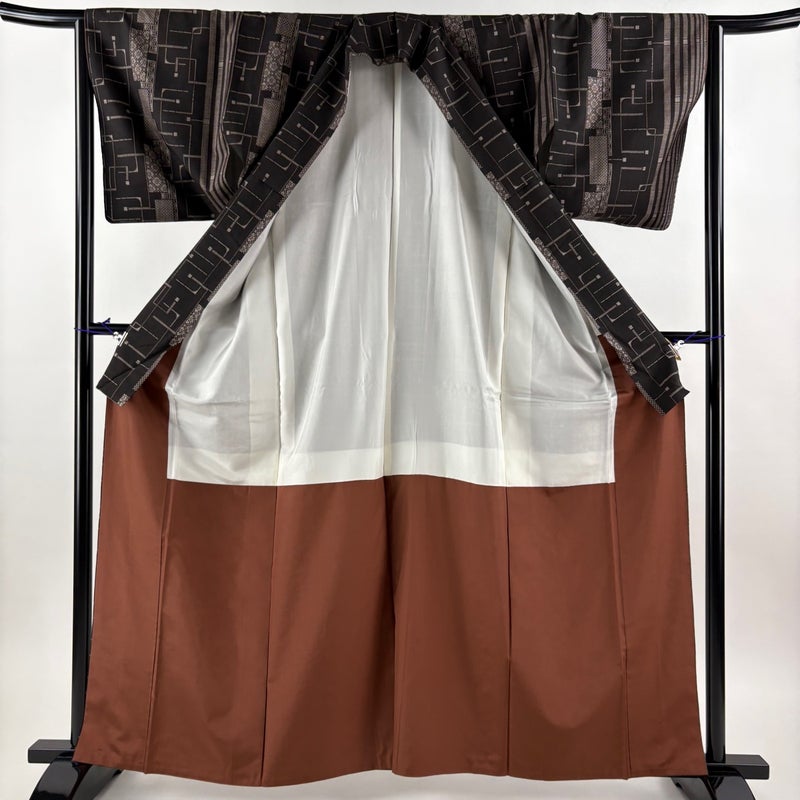 【紬】 茶系 焦茶色 秀品 A 約160cm~約169cm 裄丈63cm-64cm (S)size 袖丈46cm以下 9990-29990 美品 五万以下